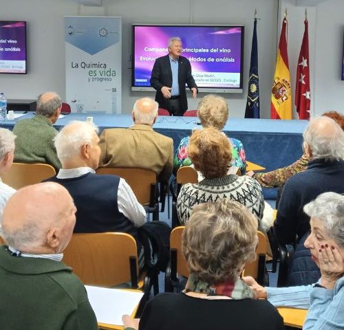 febrero 26, 2026La Conferencia-Cata “Componentes principales de la uva y del vino. Evolución de los métodos de análisis”, celebrada el pasado 17 de febrero de 2026 en el Salón de Actos del Ilustre Colegio Oficial de Químicos de Madrid, fue un auténtico éxito de asistencia y participación, despertando un notable interés entre los asistentes.